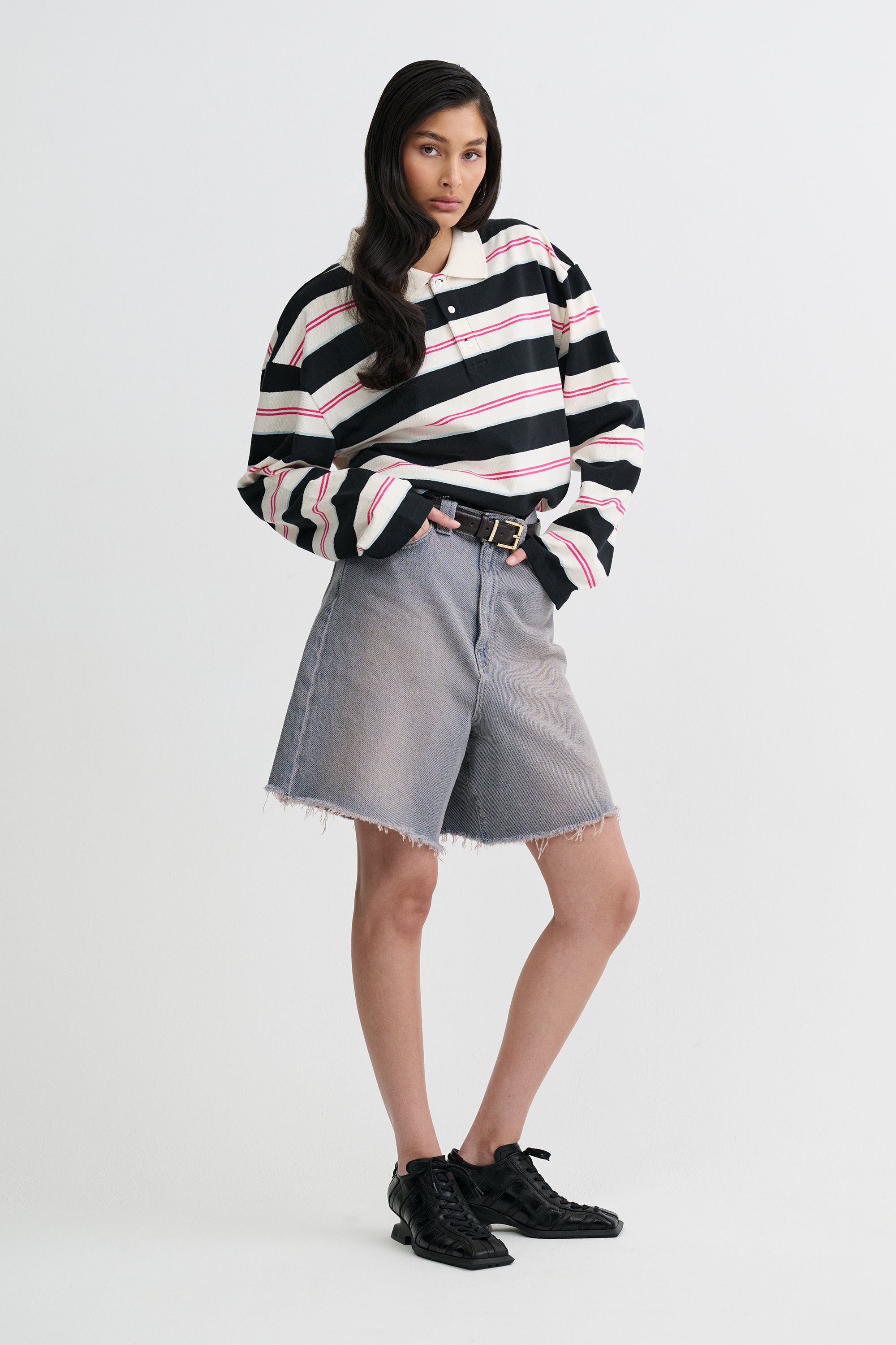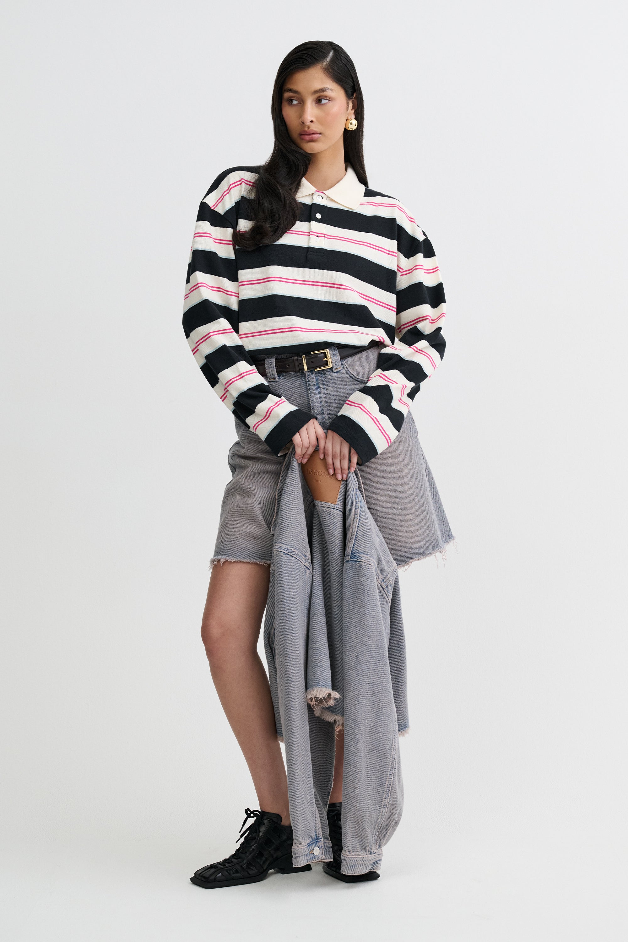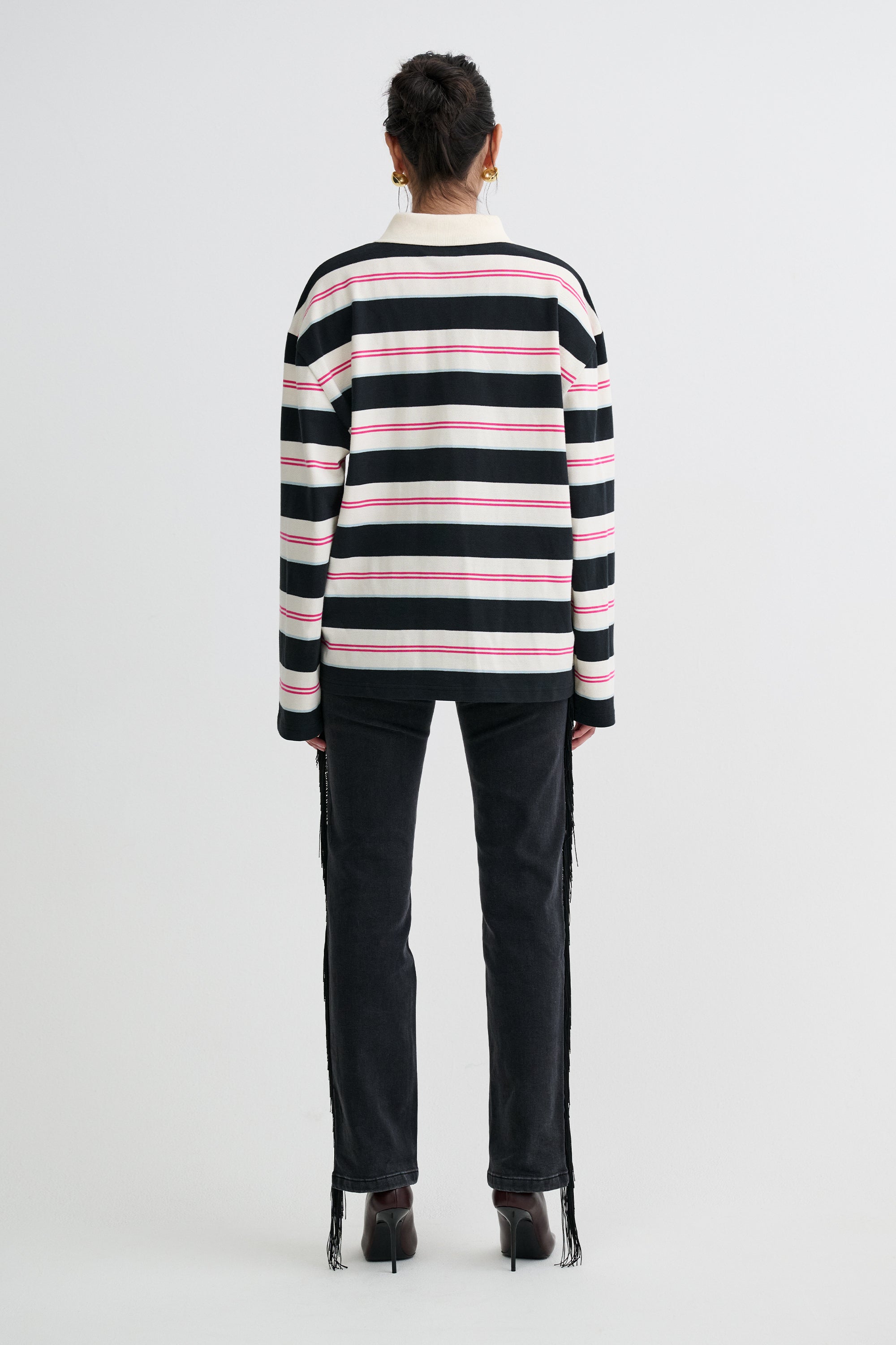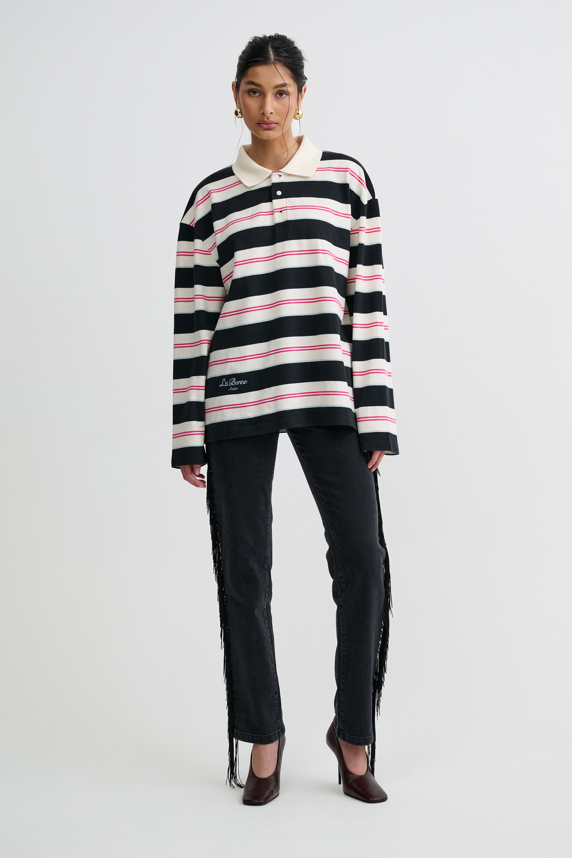Elevate your seasonal wardrobe with The Long Sleeve Piqué, a modern interpretation of a classic staple, featuring a custom, multi-tonal stripe pattern. Balancing athletic tradition with contemporary ease, this versatile piece is defined by its clean, contrasting cream collar and a relaxed, sporty silhouette.