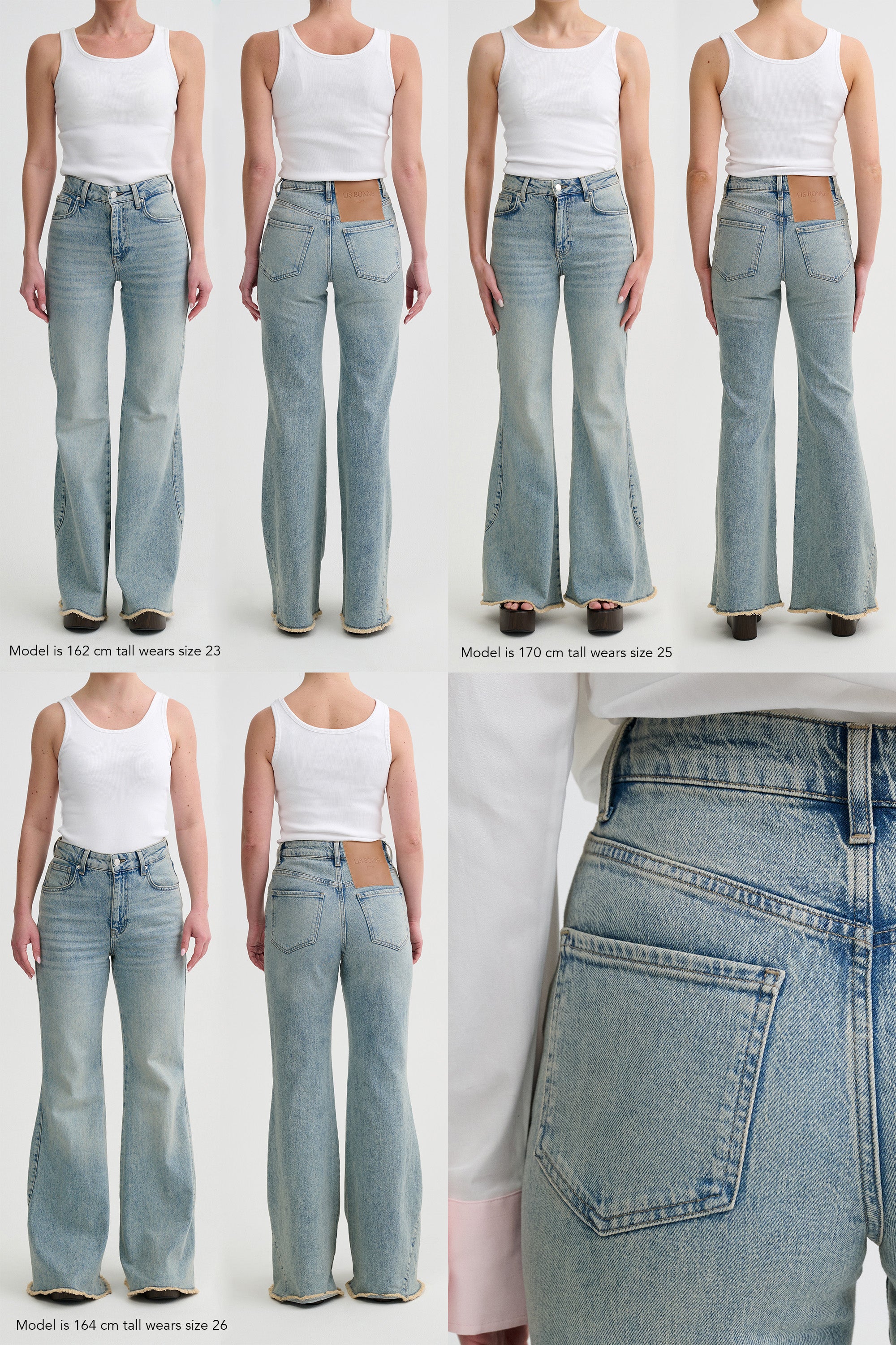 Please note that some of the sizes of the High Waist Flare Jeans 055 is only available for pre-order, with an estimated delivery of 5-6 weeks.