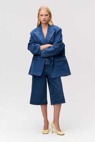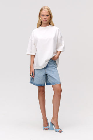 Features the same relaxed fit as our SS24 Wide Denim Shorts, now in a Bermuda length. High-waisted for a structured fit. We recommend sizing down for a closer fit.