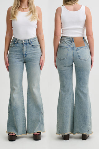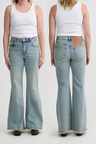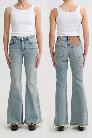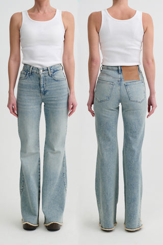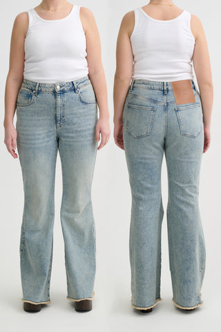 Crafted in comfortable stretch denim, the Denim 055 offers a high-rise, slim-fit silhouette with flare legs. We recommend choosing your true size. Model wears size 26 and is 175cm.