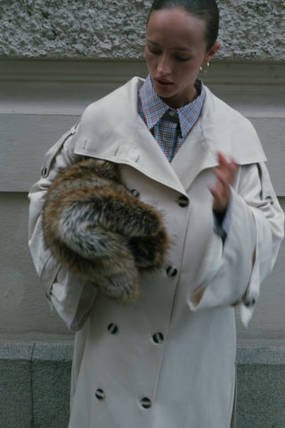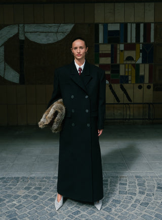 Lines become silhouettes, edges echo Scandinavian architecture, and nature is woven softly into every form. Stockholm’s stone, concrete, and sky carve the garments, shaping not just fabric, but presence. The city flows through each cut - a structure in motion, a quiet rhythm of precision and calm.