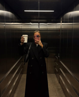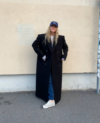 @carinfalk wearing The Statement Maxi Coat Black in Stockholm