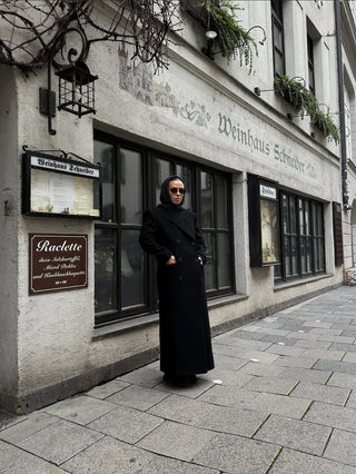 @mayaparnevik wearing The Statement Maxi Coat Black in München