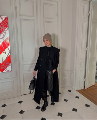 @emiliadeporet wearing The Statement Maxi Coat Black in Stockholm
