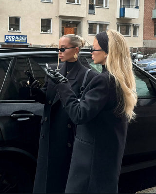@carlaamandaaa & @kklaraolofsson wearing The Statement Maxi Coat Black in Stockholm